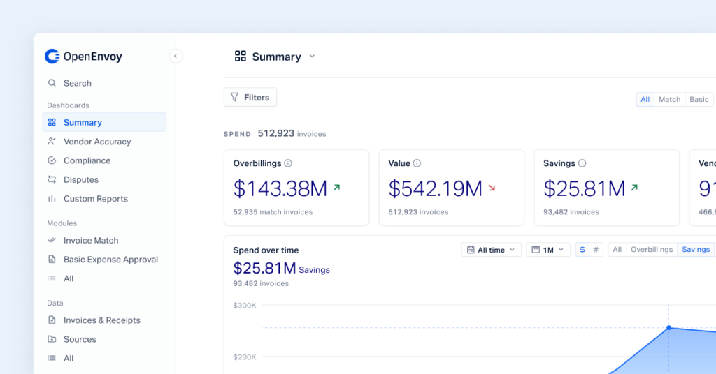 - Improved Overbillings KPI - Tracking supplier overbillings identified by OpenEnvoy has been improved. This KPI represents fully reconciled invoices overbilled by suppliers – documentation gaps or potential overbillings are excluded.